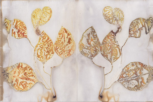 are the result of the leaves being sandwiched between a folded sheet of paper.