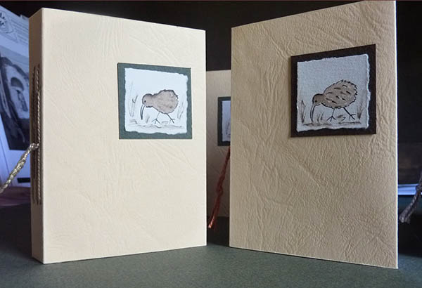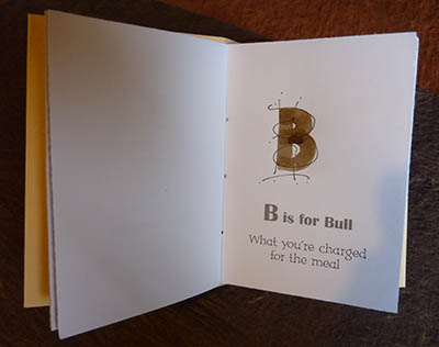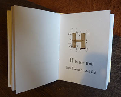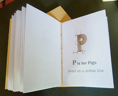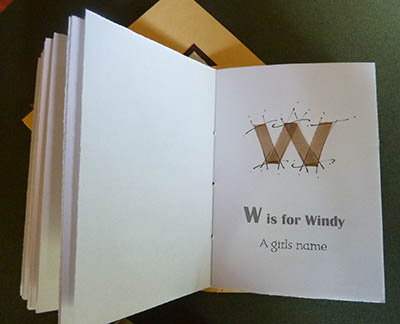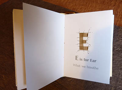 ![]() The walnut ink upper case letters were individually brush lettered with added fine lines, after printing before binding. |