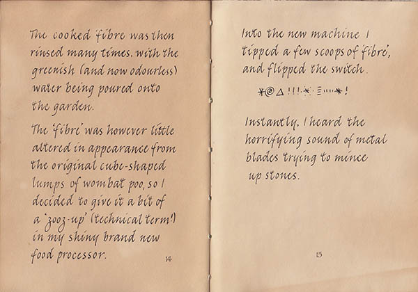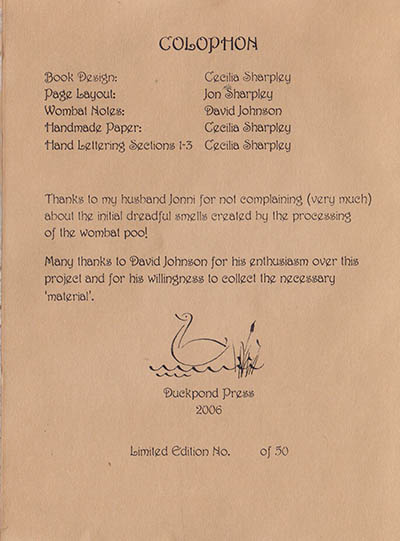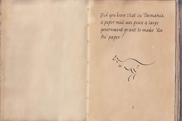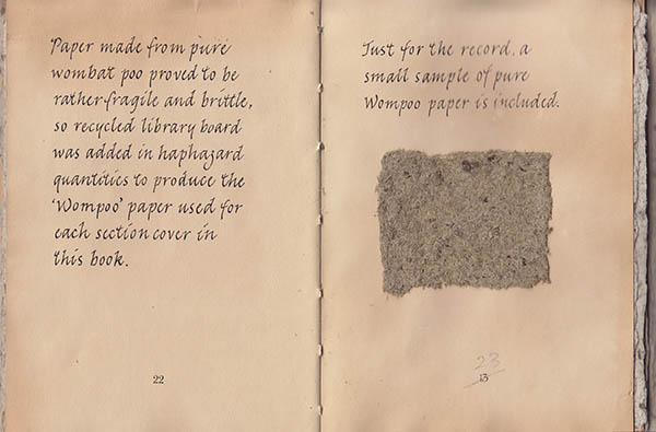 ![]() It was a mammoth task this year, and with only a limited quantity of pure wombat poo paper, plus the fact that it lacked strength on its own and was better combined with other plant fibre, some of the book covers were either a combination or solely grass paper. Each book does contain a small sample of pure wompoo paper on page 23. |